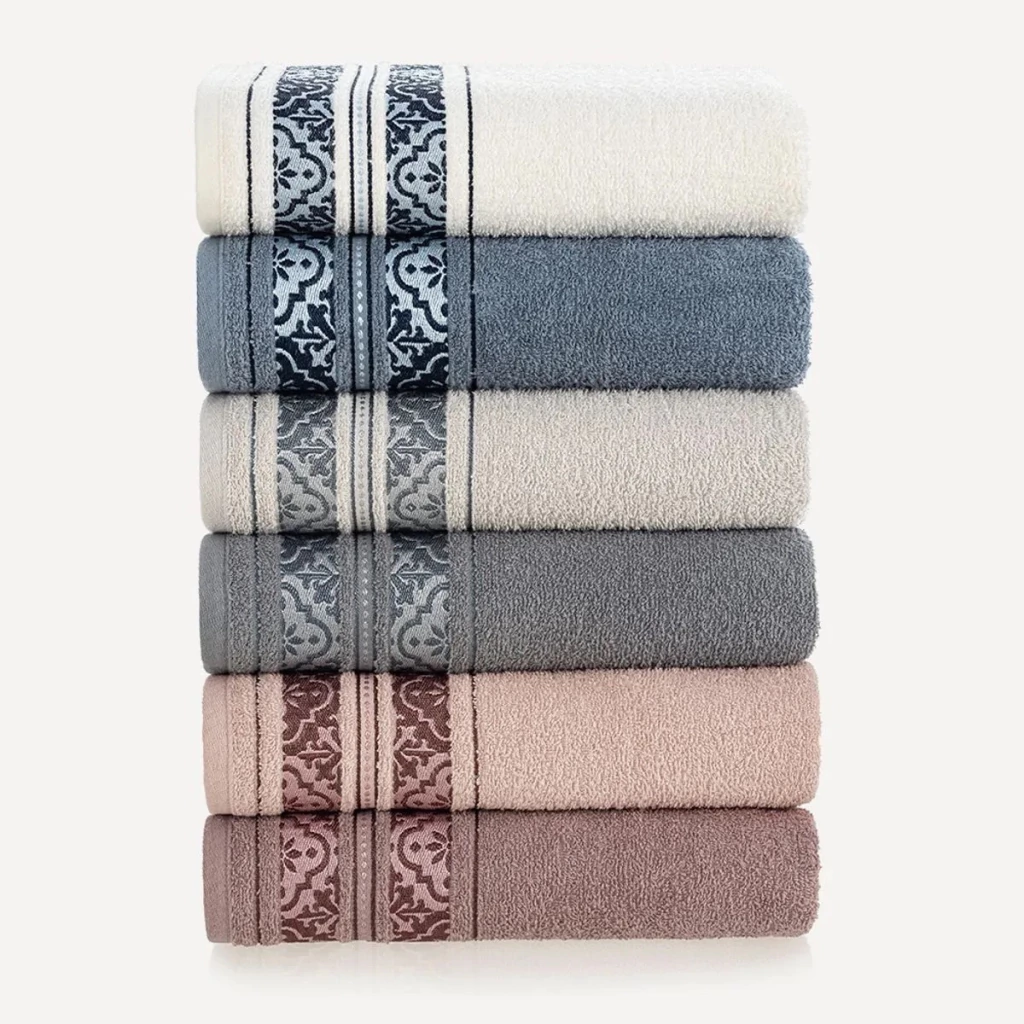 Atributos: Toque macio; Boa absorção; Pré-encolhido; Antipilling; Barra jacquard decorativa